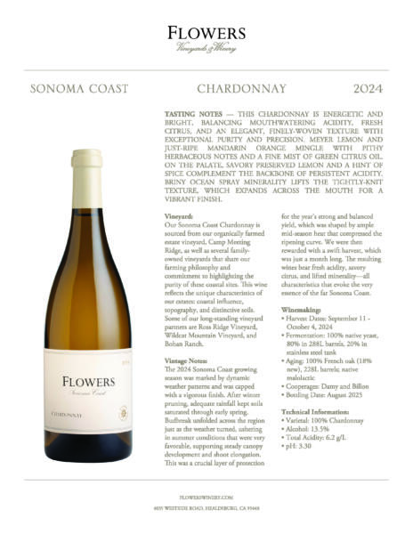 Pioneers of the Sonoma Coast. Our founders were among the first to plant grapes along the distant fringes of the Sonoma Coast, on a steep ridgeline just inland from the Pacific Ocean. The cooling coastal influence and soaring elevation of these extraordinary vineyards produce Pinot Noir and Chardonnay of great complexity and elegance.